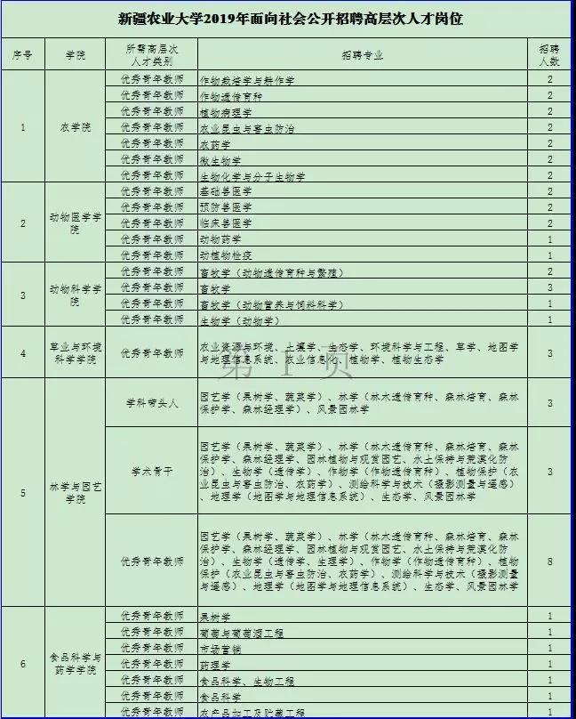 新疆农业大学2019年面向社会公开招聘