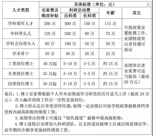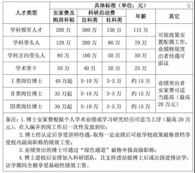 工资待遇:学科带头人一次性提供100万元的安家费或建筑面积120 m2左右的住房一套,享受10万元/年生活津贴(享受3年,含税),科研经费面议